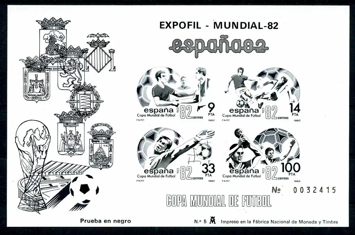 Spanien Schwarzdruck Block 26 postfrisch Fußball #GE438