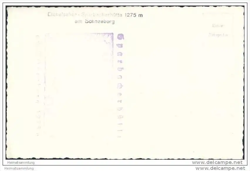 Sparbacherhütte am Schneeberg - Foto-AK - rückseitig Hüttenstempel (G17714)