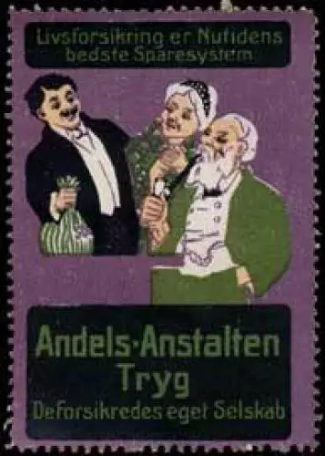Andels-Anstalten Tryg, Versicherung, Größe/Zustand: 6x4 , guter Zustand, Original alte Reklamemarke die seinerzeit für die Werbung benutzt wurde