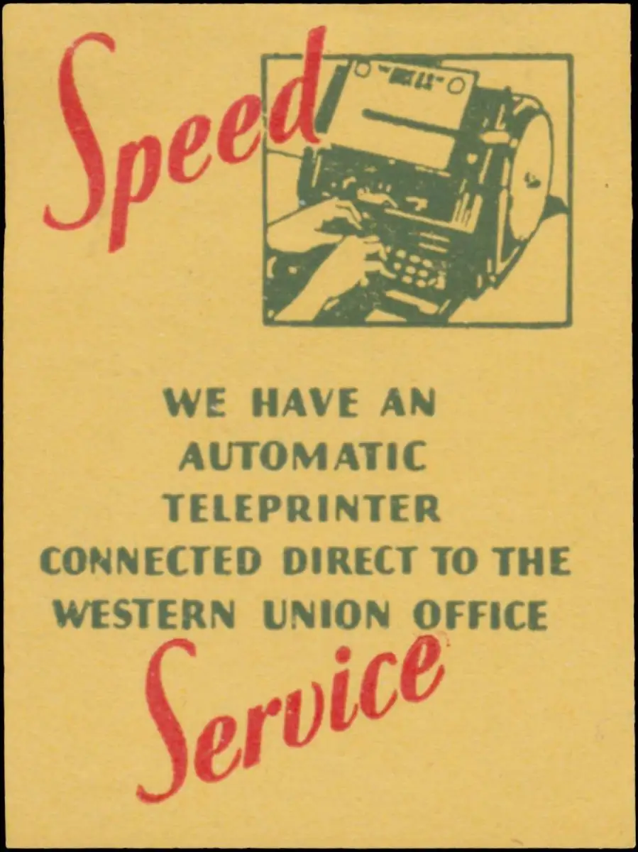 USA, Bank, Telegrafie, Größe/Zustand: 5x4 , guter Zustand, Original alte Reklamemarke die seinerzeit für die Werbung benutzt wurde