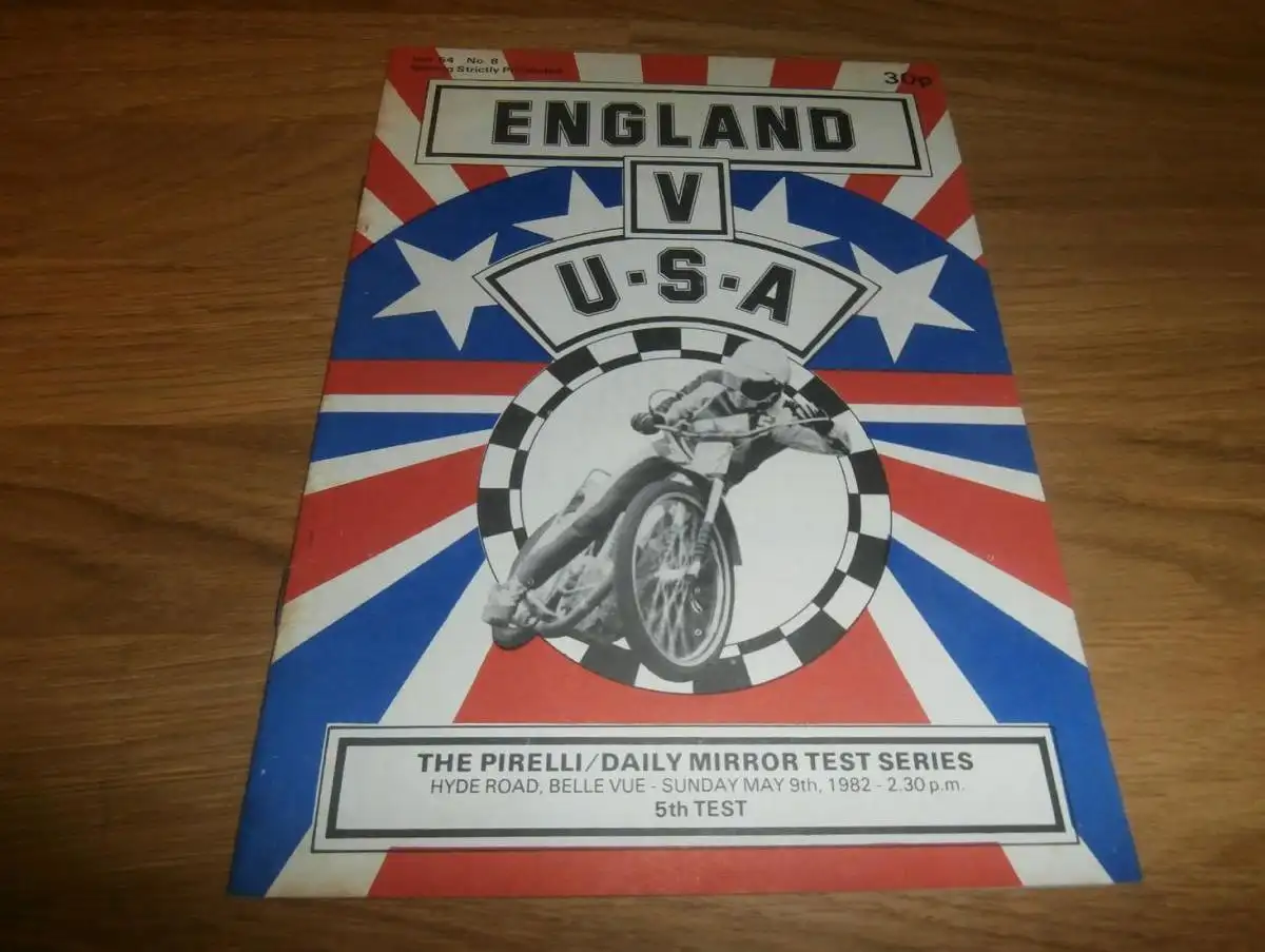 Speedway Belle Vue 9.05.1982 , England vs. USA , Programmheft / Programm / Rennprogramm , program !!!