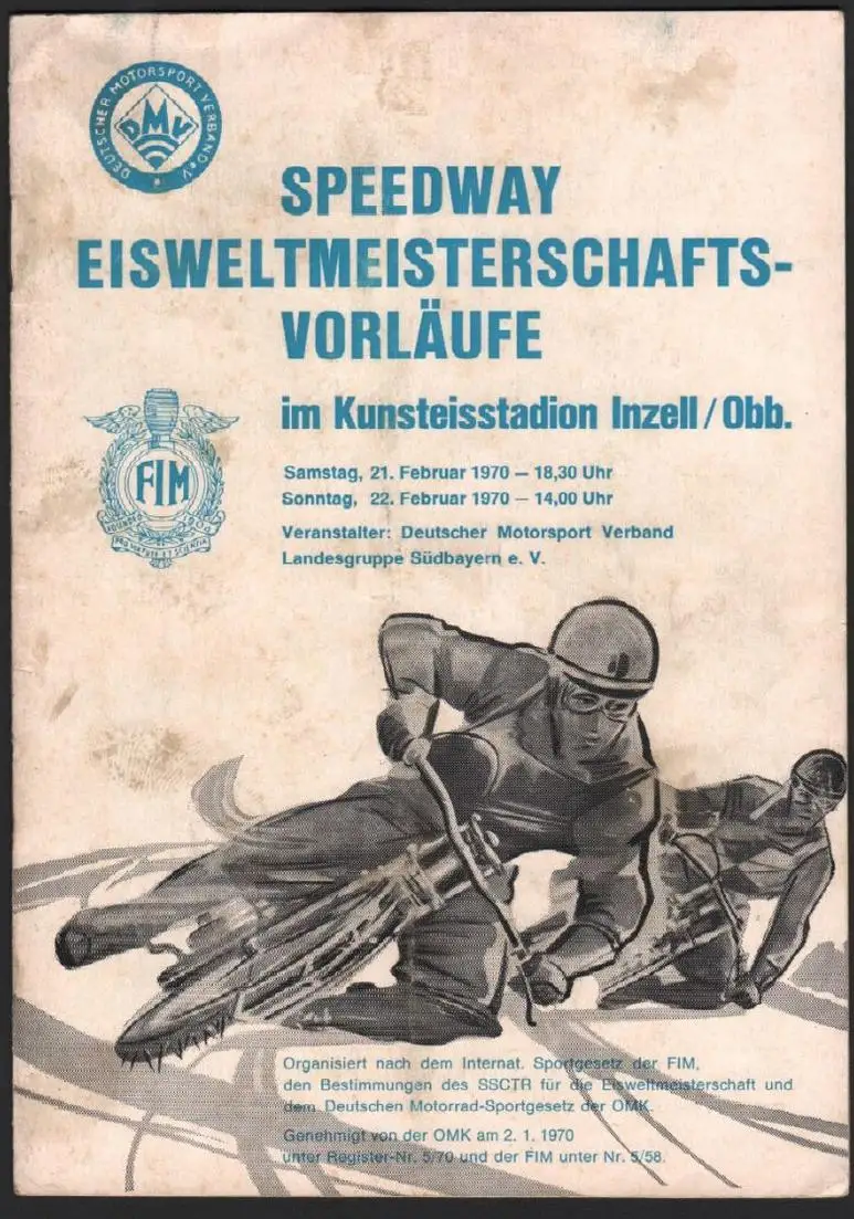 Speedway - Eisweltmeisterschaft 1970 in Inzell , Eisspeedway , Programmheft / Programm !!! OR-!