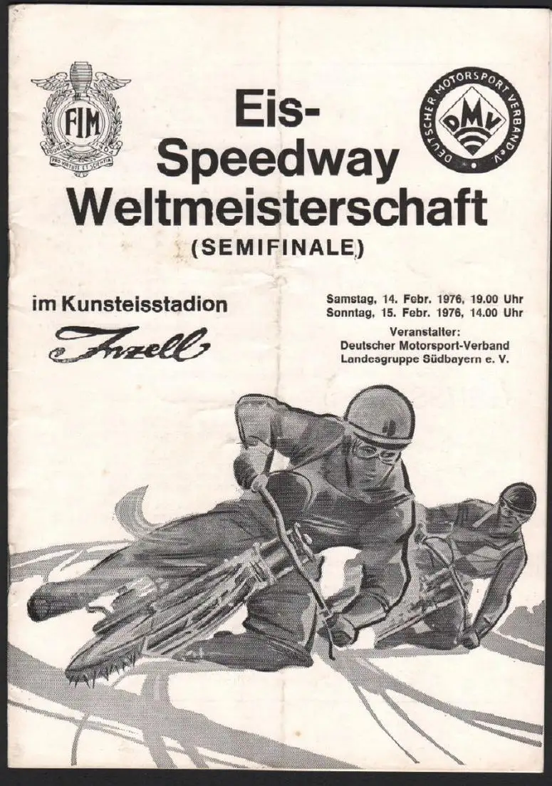 Speedway - Eisweltmeisterschaft 1976 in Inzell , Eisspeedway , Programmheft / Programm !!! OR-!