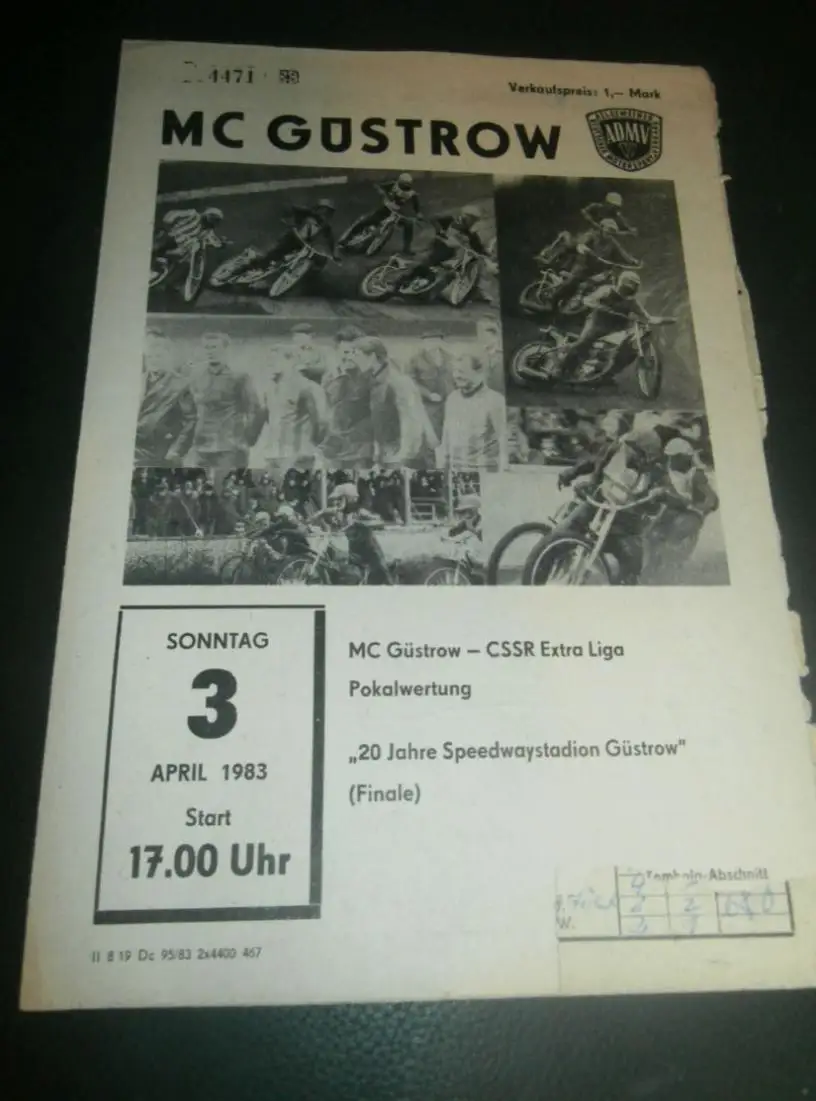 Speedway Güstrow 03.04.1983 , CSSR Extra Liga , Programmheft , Programm , Rennprogramm !!!