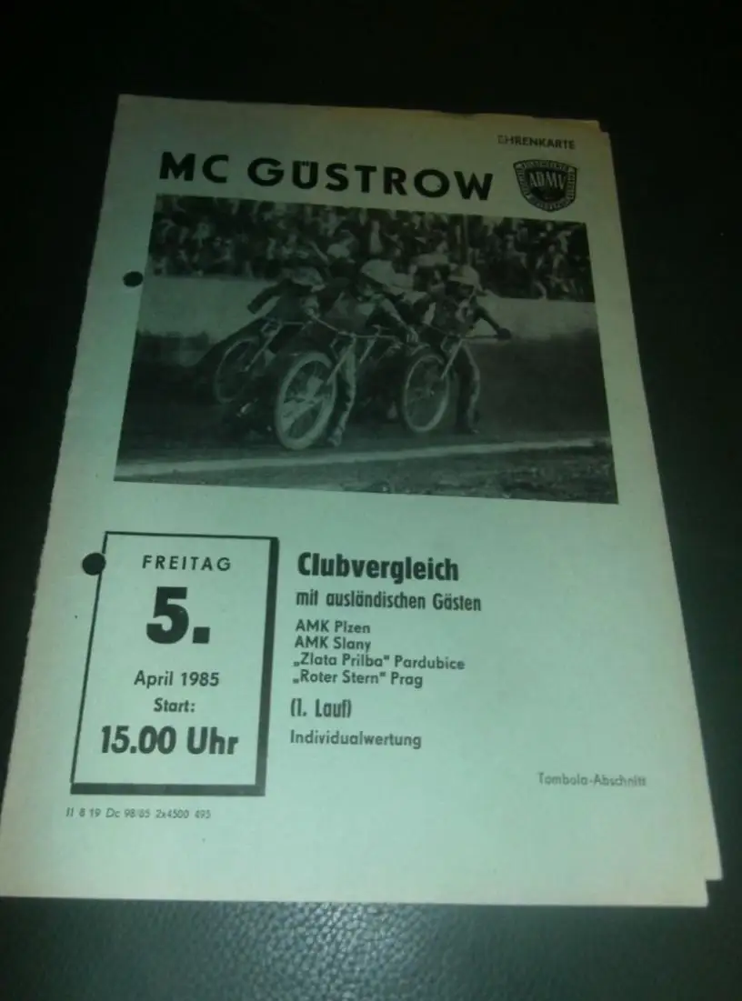 Speedway Güstrow 05.04.1985 , Plzen , Slany , Pardubice , Prag , Programmheft , Programm , Rennprogramm !!!