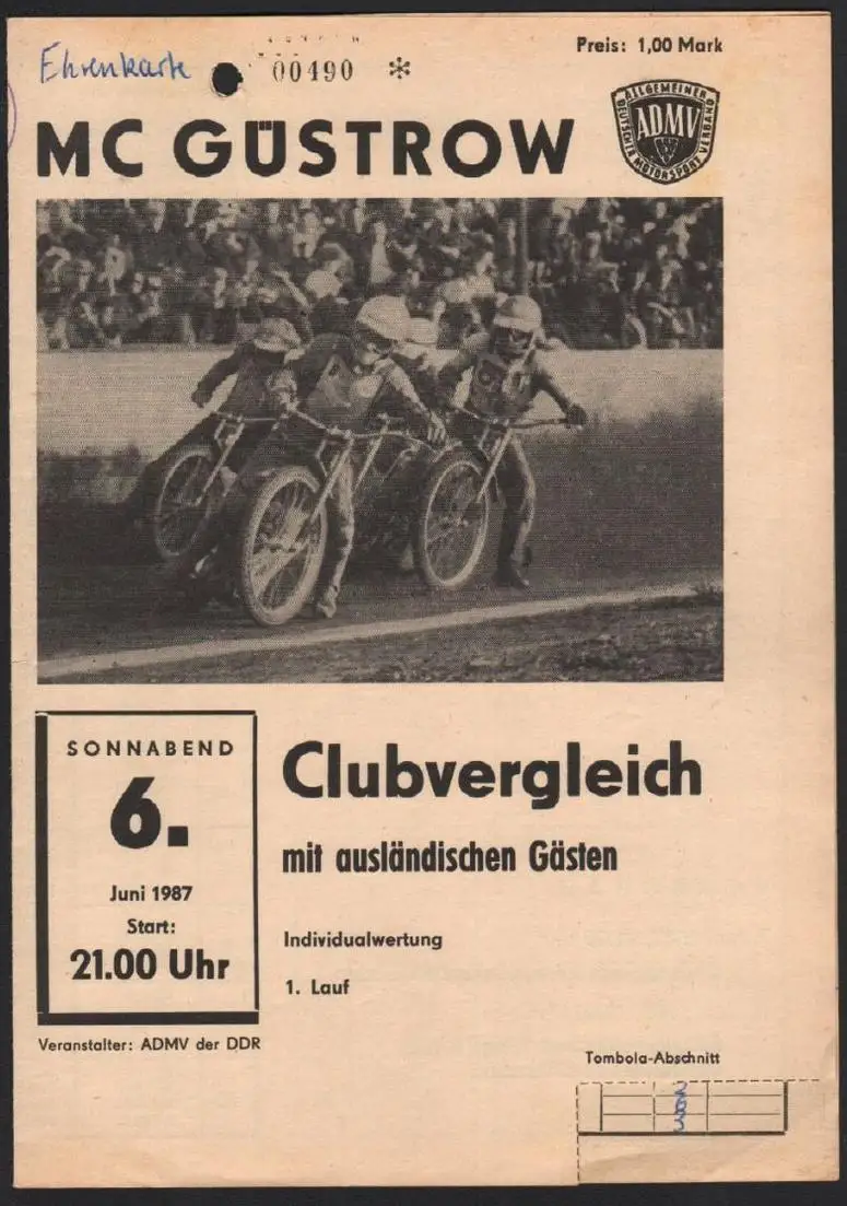 Speedway Güstrow 06.06.1987 Clubvergleich Programmheft , Programm , Rennprogramm