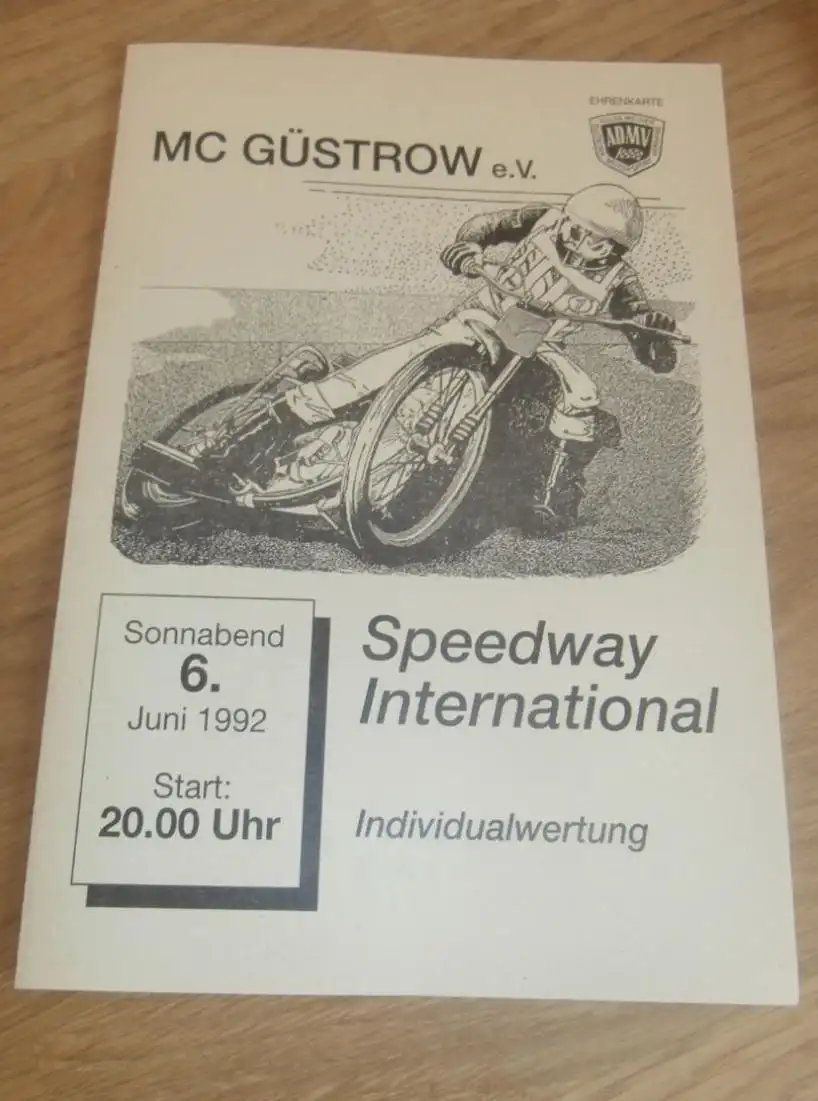Speedway Güstrow 06.06.1992 , international , Programmheft , Programm , Rennprogramm !!!
