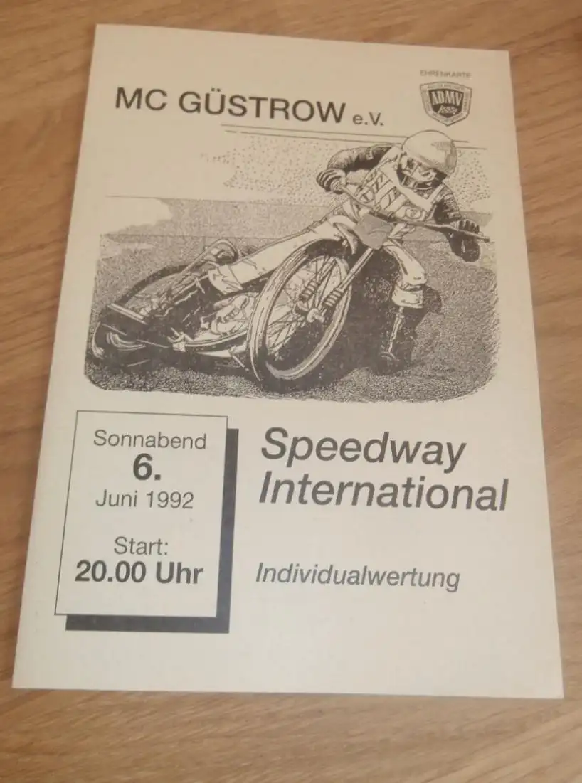 Speedway Güstrow 06.06.1992 , international , Programmheft , Programm , Rennprogramm !!!