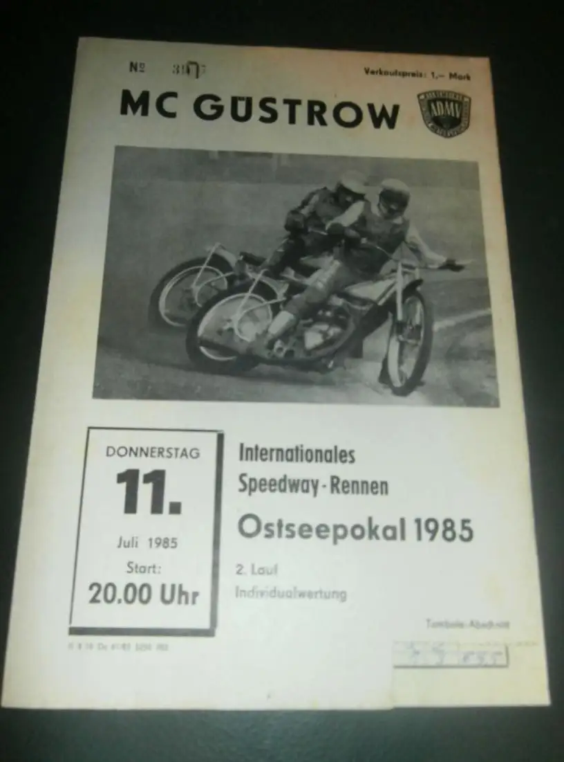 Speedway Güstrow 11.07.1985 , Ostseepokal , Programmheft , Programm , Rennprogramm !!!