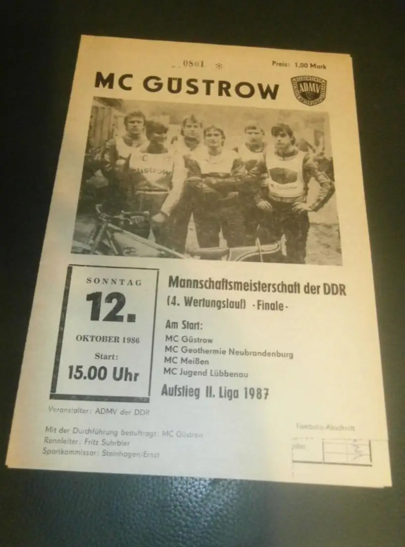 Speedway Güstrow 12.10.1986 , DDR Meisterschaft , Programmheft , Programm , Rennprogramm !!!