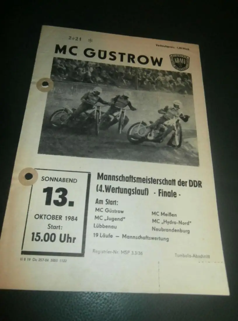 Speedway Güstrow 13.10.1984 , DDR Meisterschaft Finale , Programmheft , Programm , Rennprogramm !!!