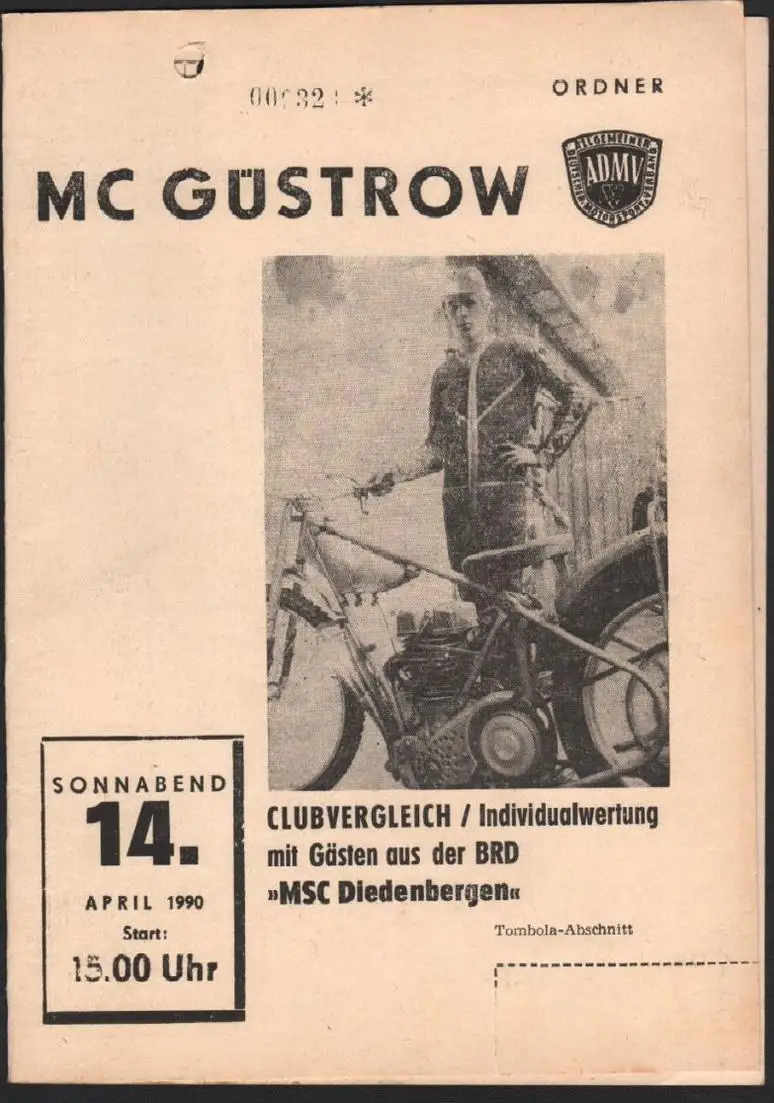 Speedway Güstrow 14.04.1990 , Diedenbergen , Programmheft , Rennprogramm