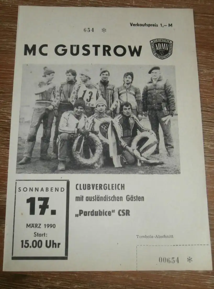 Speedway Güstrow 17.03.1990 , Pardubice , Programm , Rennprogramm !!!