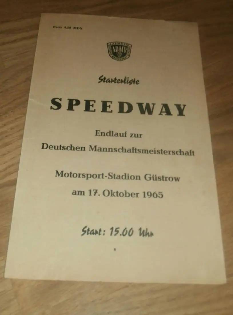 Speedway Güstrow 17.10.1965 , Finale Deutsche Meisterschaft , Programmheft / Programm / Rennprogramm , program !!!