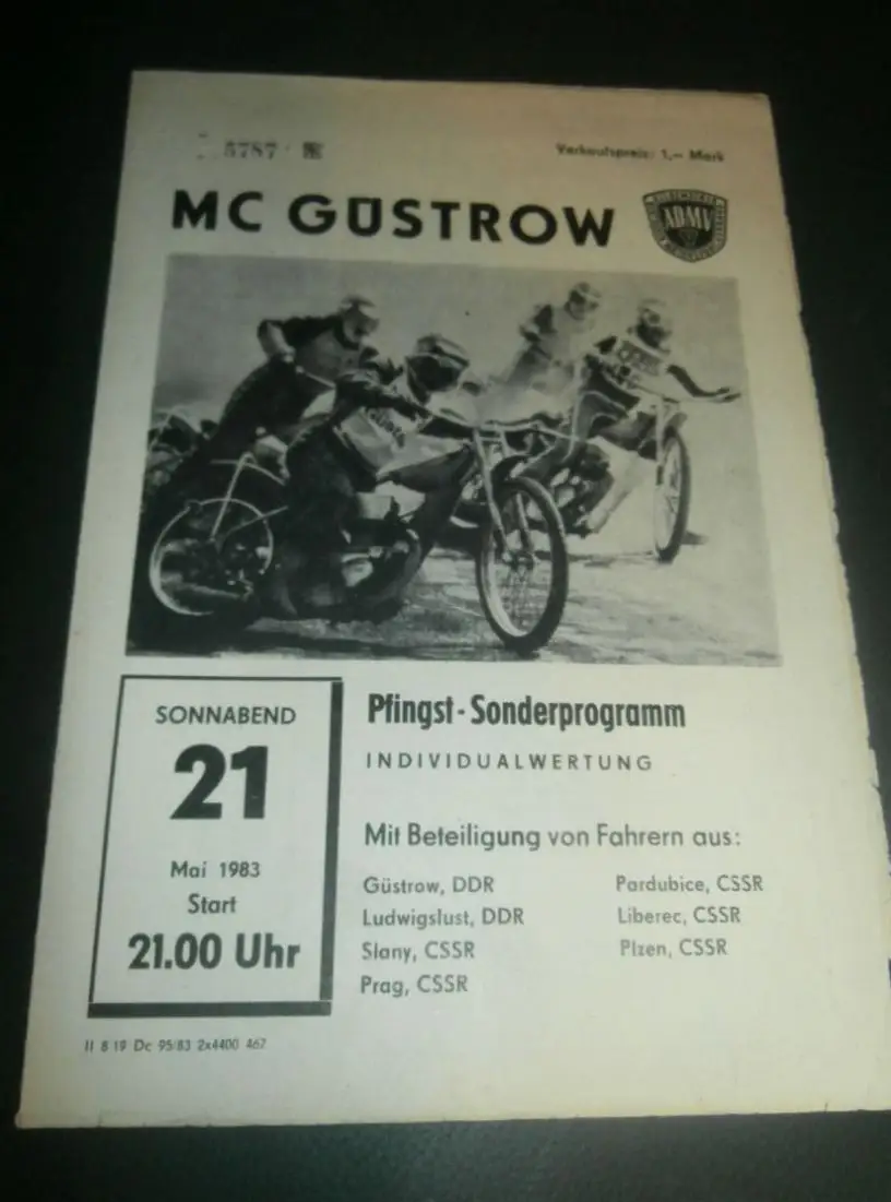 Speedway Güstrow 21.05.1983 , Pfingstrennen , Programmheft , Programm , Rennprogramm !!!