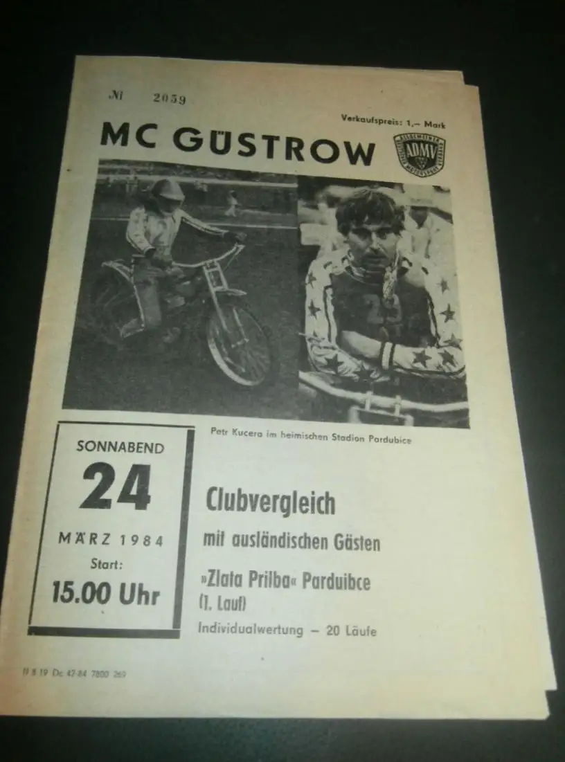 Speedway Güstrow 24.03.1984 , Pardubice , Programmheft , Programm , Rennprogramm !!!