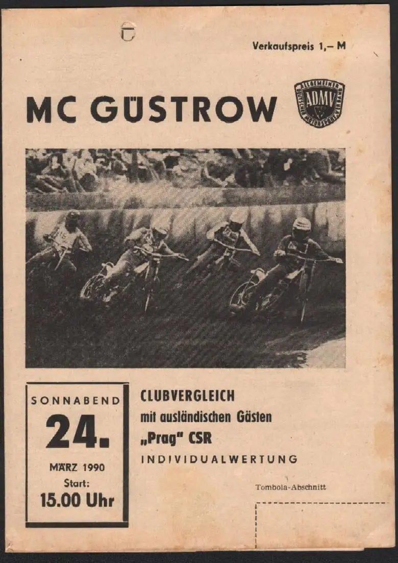 Speedway Güstrow 24.03.1990 Programmheft , ADMV , Programm , Rennprogramm