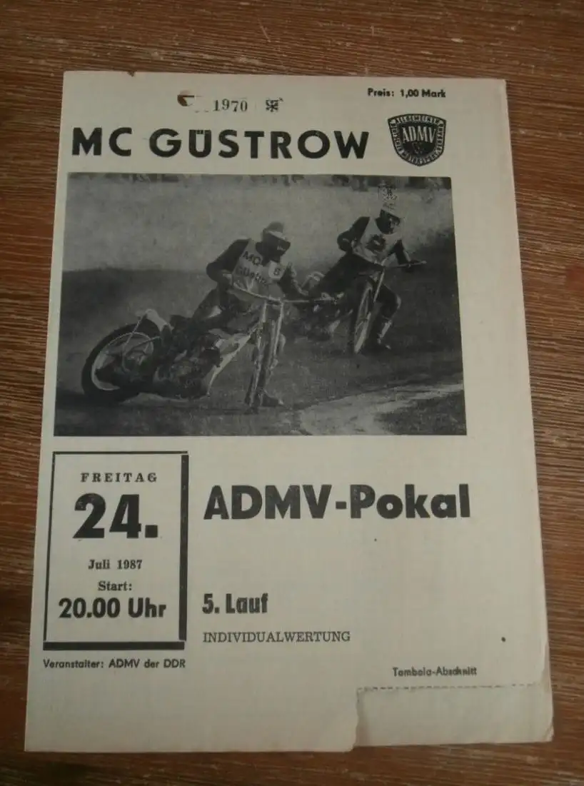 Speedway Güstrow 24.07.1987 , ADMV-Pokal , Programm , Rennprogramm !!!