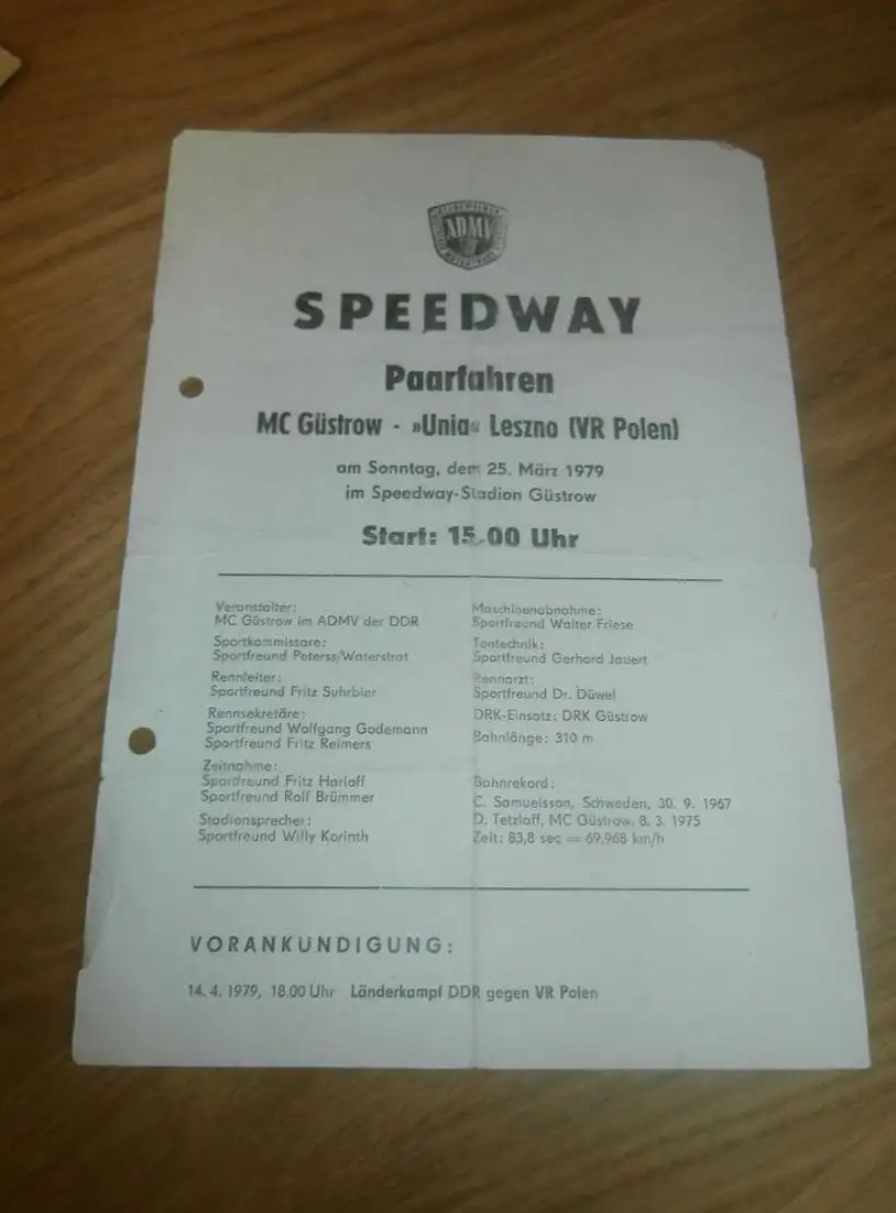 Speedway Güstrow 25.03.1979 , Unia Leszno , Programmheft / Programm / Rennprogramm , program !!!