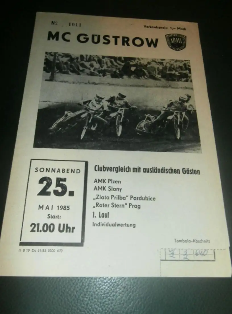 Speedway Güstrow 25.05.1985 , Plzen , Slany , Pardubice , Prag , Programmheft , Programm , Rennprogramm !!!