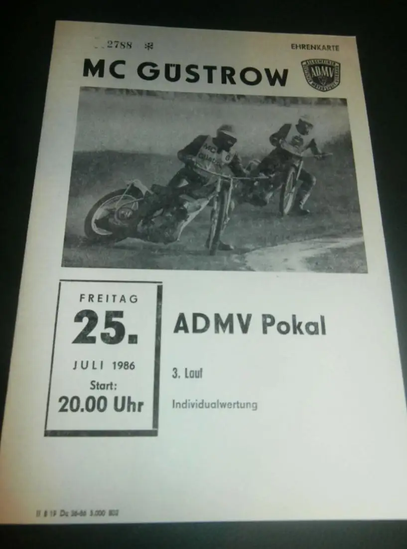 Speedway Güstrow 25.07.1986 , ADMV Pokal , Programmheft , Programm , Rennprogramm !!!
