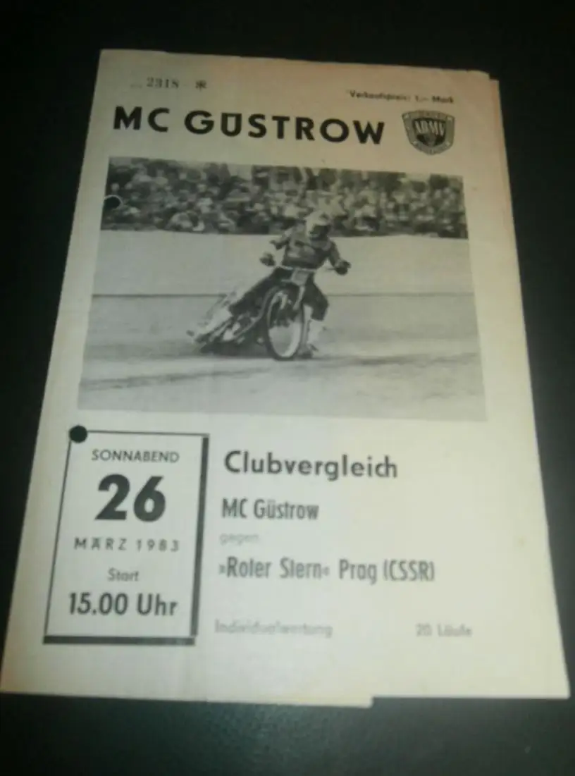 Speedway Güstrow 26.03.1983 , Roter Stern Prag , ADMV , Programmheft , Programm , Rennprogramm !!!