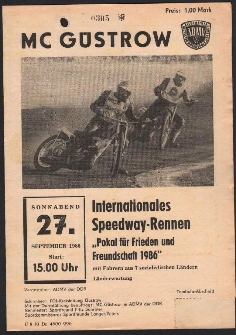 Speedway Güstrow 27.09.1986 , 7 Nationen Programmheft Programm Rennprogramm