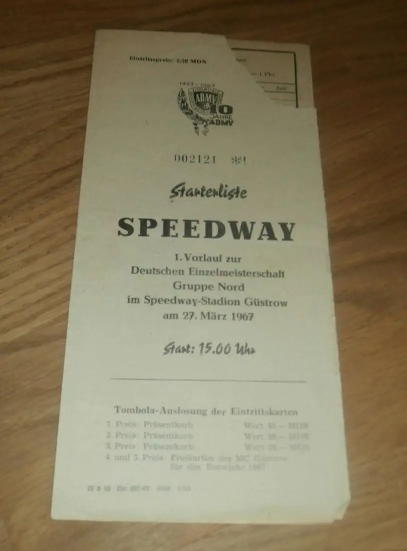 Speedway Güstrow 27.3.1967 , Deutsche Meisterschaft , Programmheft / Programm / Rennprogramm , program !!!