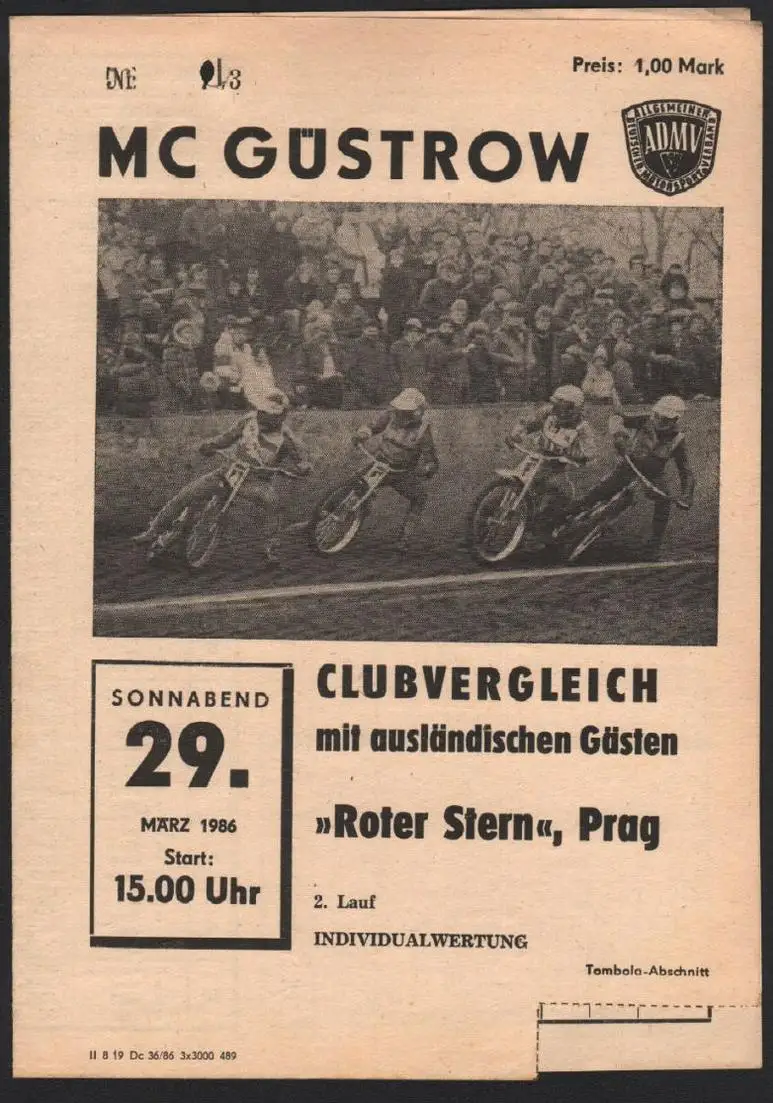 Speedway Güstrow 29.03.1986 Prag Programmheft Programm Rennprogramm