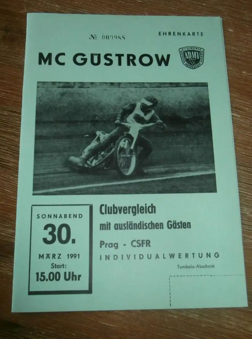Speedway Güstrow 30.03.1991 , Prag , Programm , Rennprogramm !!!