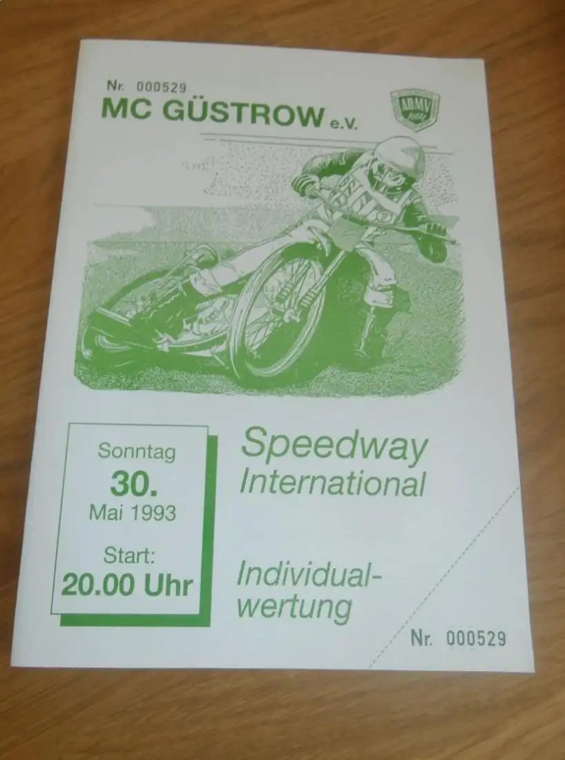 Speedway Güstrow 30.05.1993 , international , Programmheft , Programm , Rennprogramm !!!