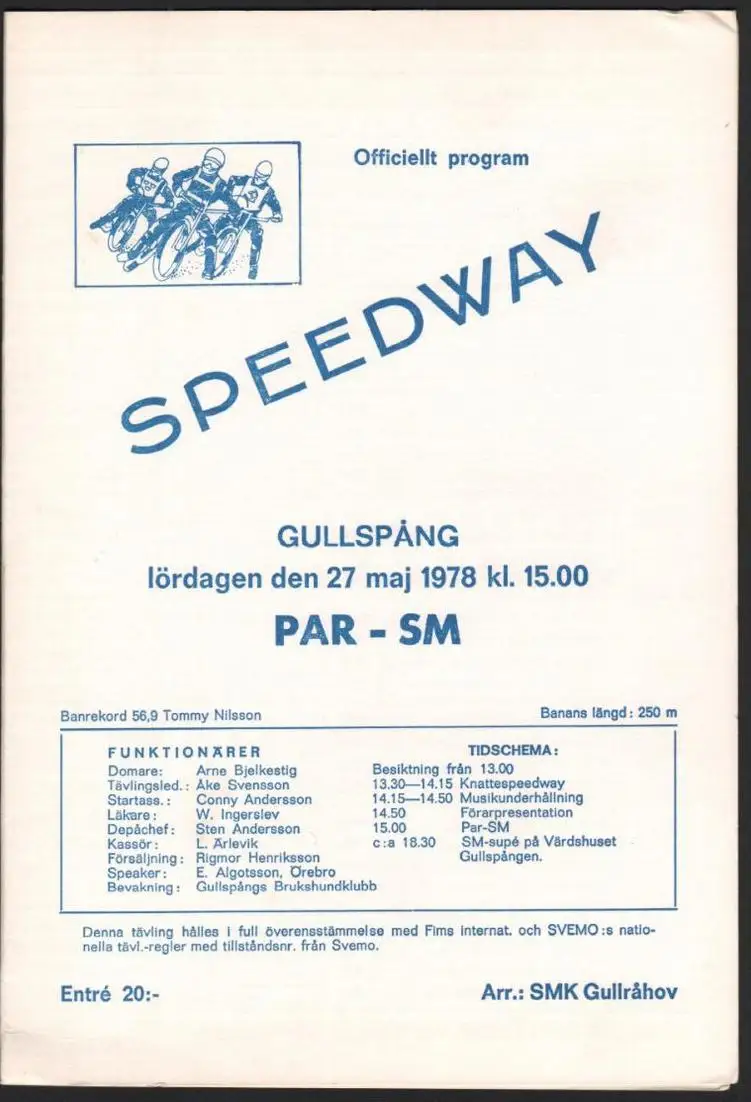 Speedway , Gullspang 27.05.1978 , Sweden , Rennprogramm , Rennprogramm , program
