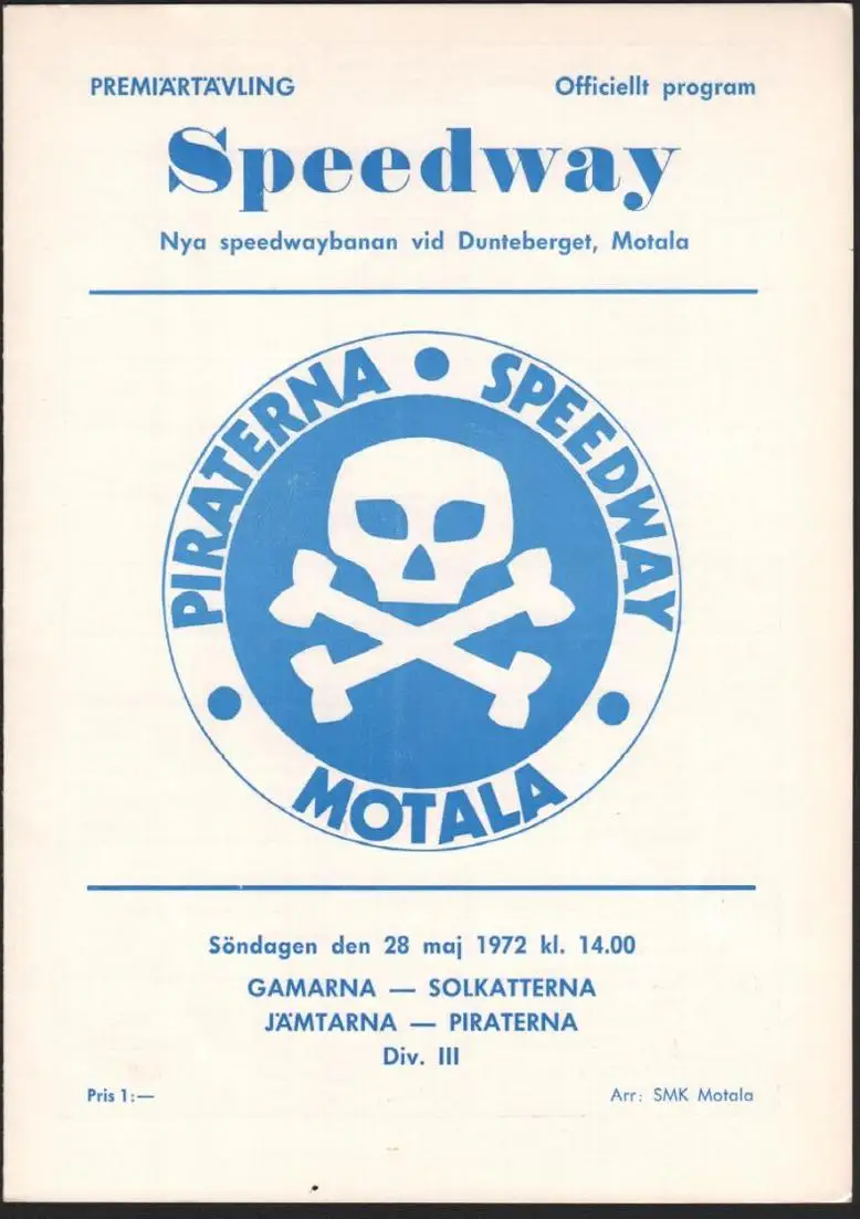 Speedway , Motala 28.05.1972 , Sweden , Programmheft , Rennprogramm , program