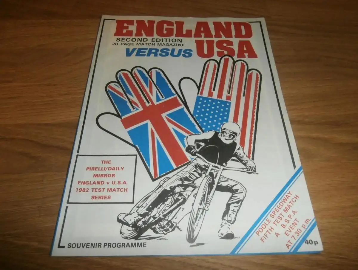 Speedway Poole 1982 , England vs. USA , Programmheft / Programm / Rennprogramm , program !!!