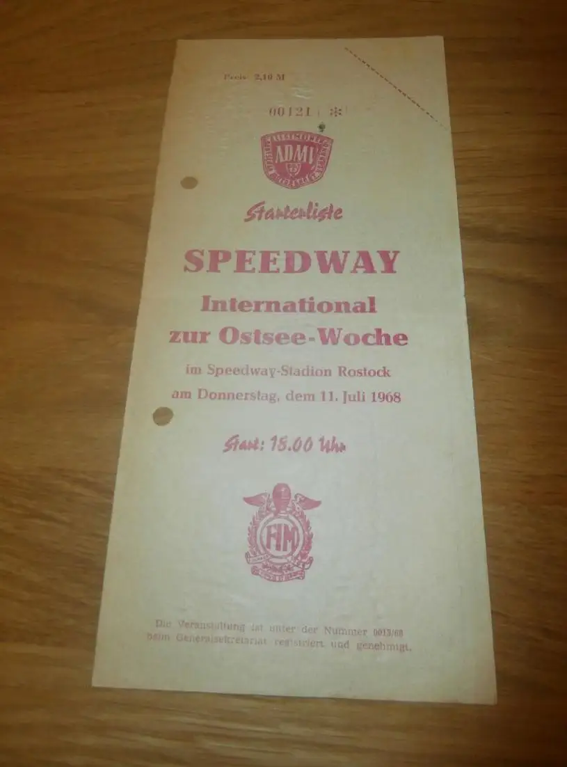 Speedway Rostock 11.7.1968 , Speedwayrennen , Programmheft / Programm / Rennprogramm , program !!!