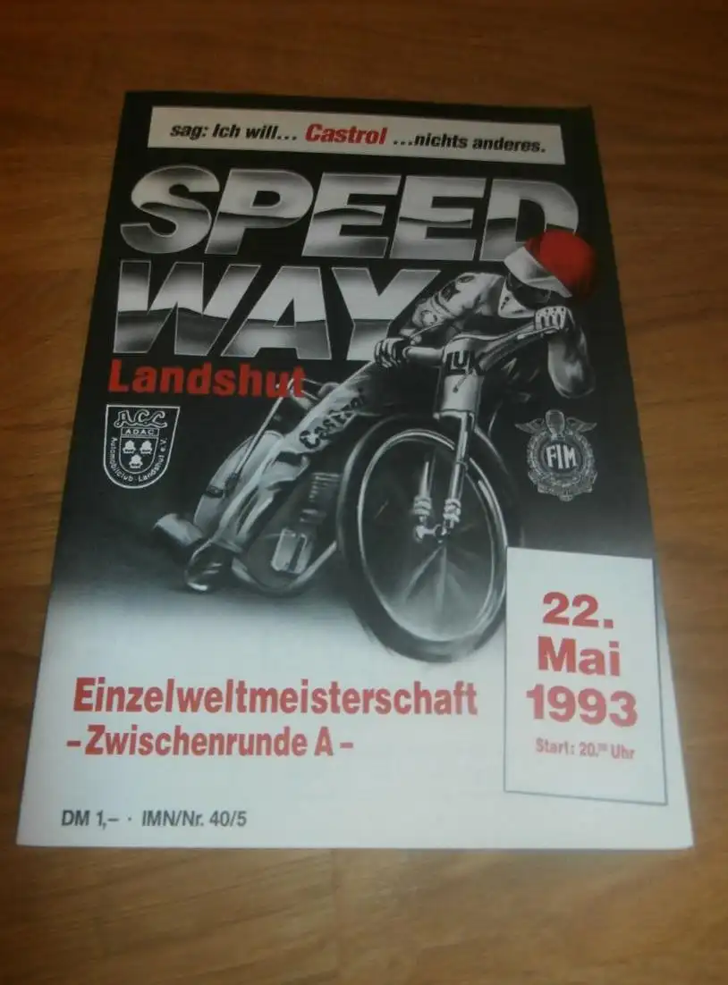 Speedway WM Landshut , 22.5.1993 , Programmheft / Programm / Rennprogramm , program !!!