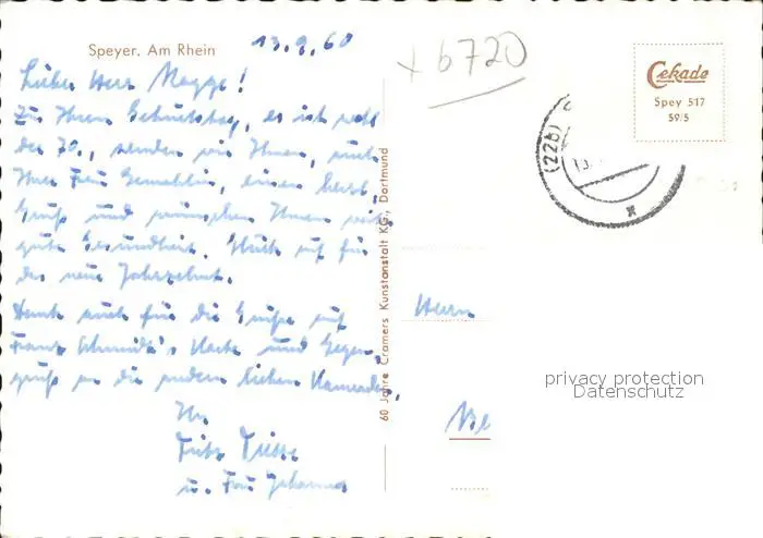 Speyer Rhein Rheinpartie Speyer postalisch gelaufen 1960 Erhaltung siehe scans Alte Ansichtskarte Postkarte hz Lmann