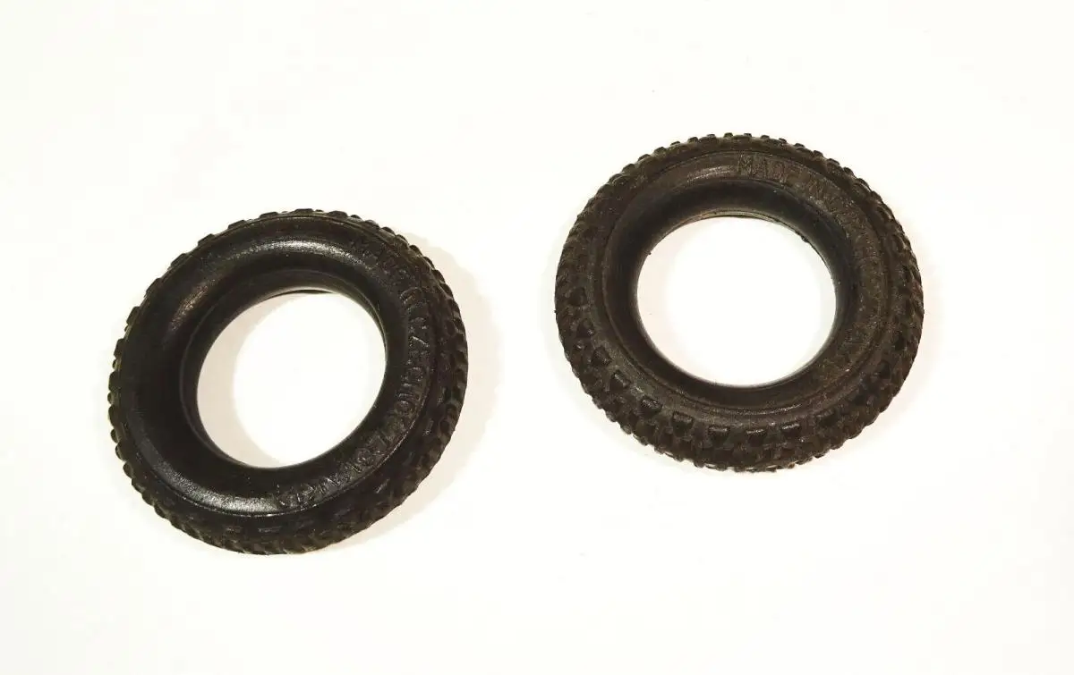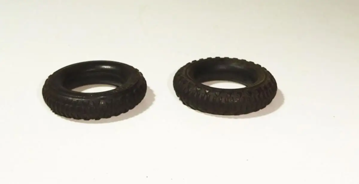Zwei originale, alte Spielzeug Gummiräder.