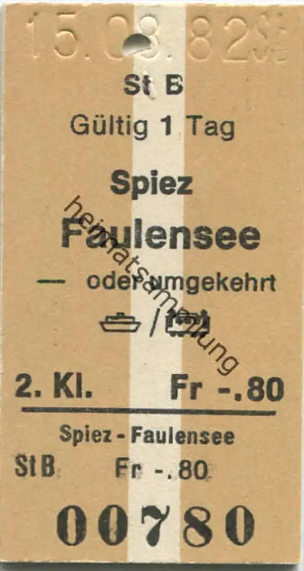 Spiez - Faulensee oder umgekehrt - Fahrkarte 1982 Fr. -.80