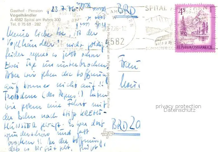 Spital_Pyhrn Gasthof Pension Vogelhaendler Spital Pyhrn postalisch gelaufen 1976 Erhaltung siehe scans [WerneD78] WernPID7