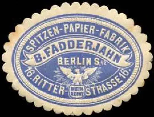 Spitzen - Papier - Fabrik B. Fadderjahn - Berlin