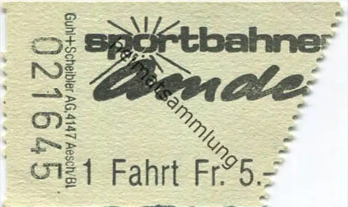 Sportbahnen Andermatt - Fahrschein 1 Fahrt 5r. 5.- (G41212)