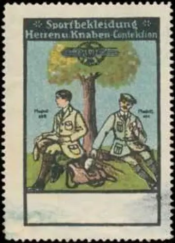 Herren- und Knaben-Confektion, Größe/Zustand: 6x4 , fleckig, Original alte Reklamemarke die seinerzeit für die Werbung benutzt wurde