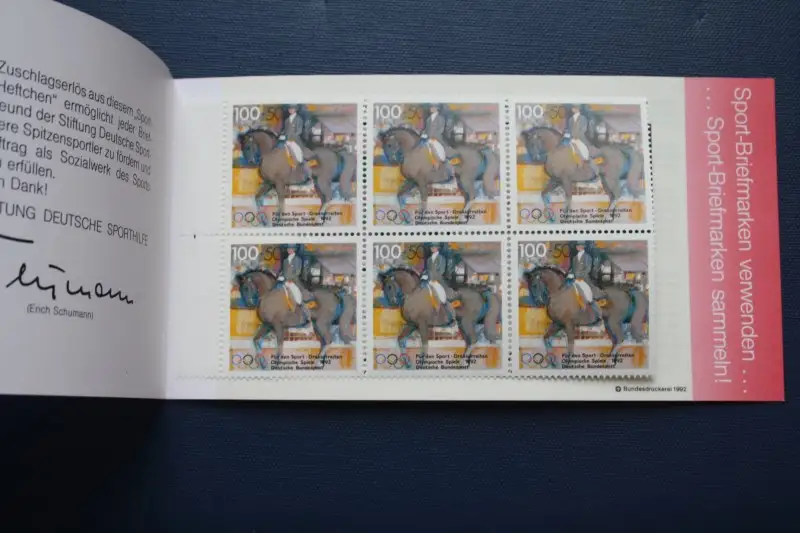 Sporthilfe, Sport Markenheftchen, Markenheft Deutsche Sporthilfe 1992
