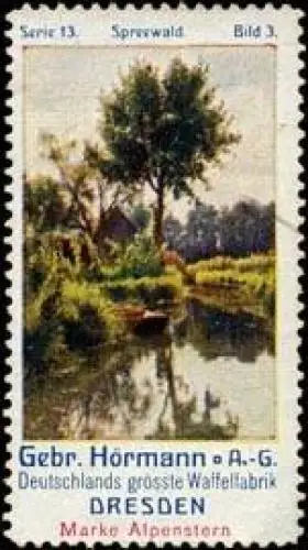 Spreewald, Serie 13, Bild 3, Deutschlands grösste Waffelfabrik, Größe/Zustand: 6x3 , guter Zustand, Original alte Reklamemarke die seinerzeit für die Werbung benutzt wurde