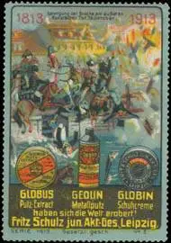 Geolin, Globus, Globin, Serie 1913, Nr. 5, Völkerschlacht, Befreiungskriege, Schuhputz, Reinigung, Größe/Zustand: 7x5 , guter Zustand, Original alte Reklamemarke die seinerzeit für die Werbung benutzt wurde