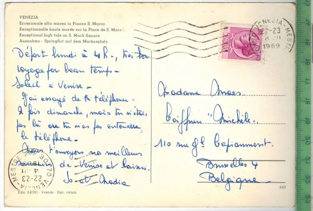 Springflut auf dem Markusplatz 1969, Verlag: -----------------, POSTKARTE, Frankatur, Stempel, Erhaltung: I-II,