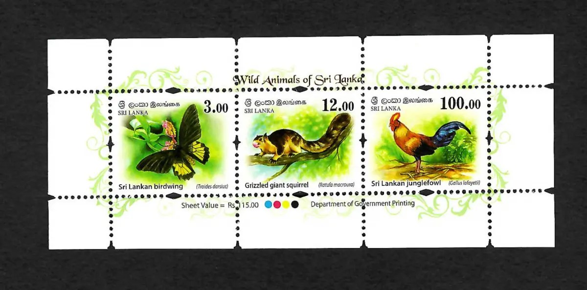 Sri Lanka: Tiere Birdwing, Squirrel, Junglefowl, Block postfrisch