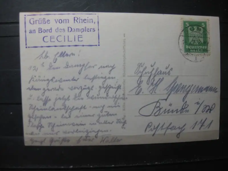 ca. 1926; Unschärfen, Spiegelungen, Verbiegungen, Verwerfungen sind allein durch das abfotografieren bedingt; Karte ist beidseitig abgebildet, Erhalt siehe Scan; ist das Foto qualitativ nicht aussagekräftig genug, kann es besseres Foto angefordert werden. Rückgabe bei Karten ist generell ausgeschlossen.