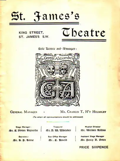 Autor: St. James´s Theatre. - George Alexander. - A. E. W. Mason. - Kate Cutler.